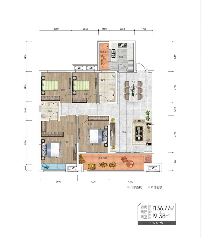 炎陵县亿都九里晴川4室2厅2卫A2户型图鉴赏-看好房