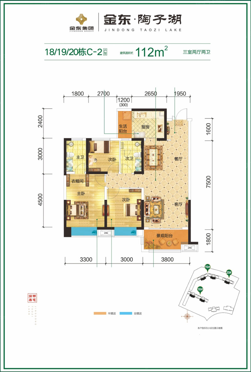 醴陵金东陶子湖3室2厅2卫18/19/20#C-2户型图鉴赏-看好房