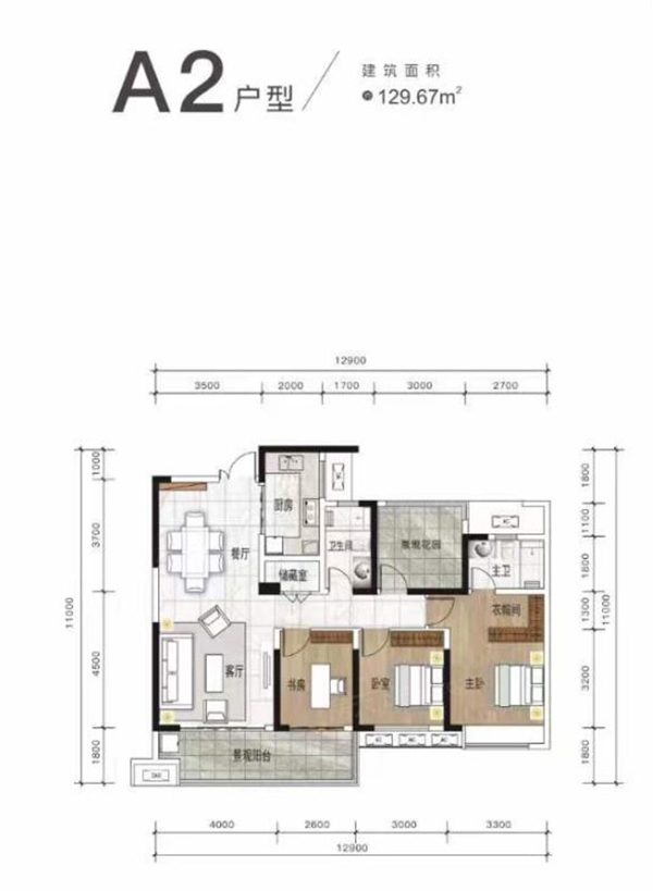 醴陵金东陶子湖3室2厅2卫A2户型图鉴赏-看好房