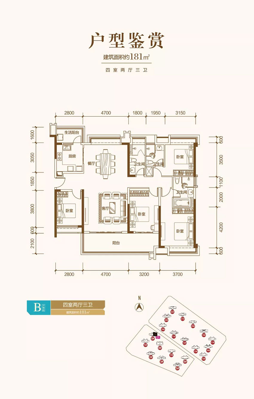 株洲​景业山湖湾4室2厅3卫B-01户型图鉴赏-看好房