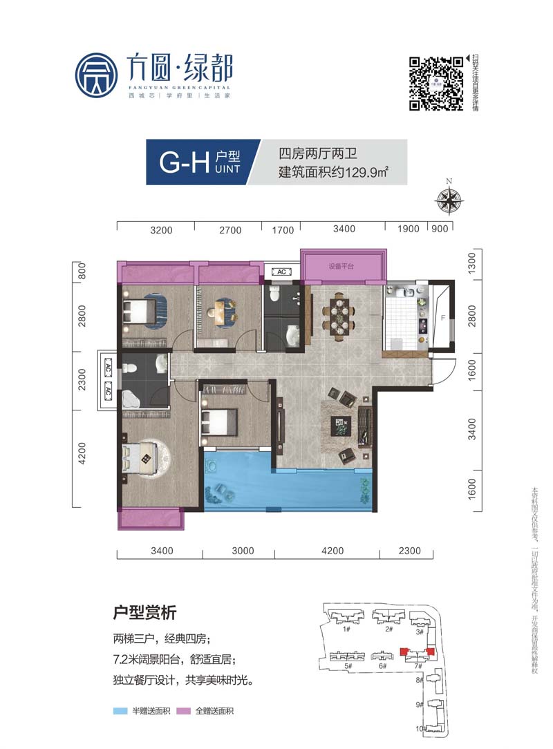 常德方圆绿都4室2厅2卫G-H户型图鉴赏-看好房