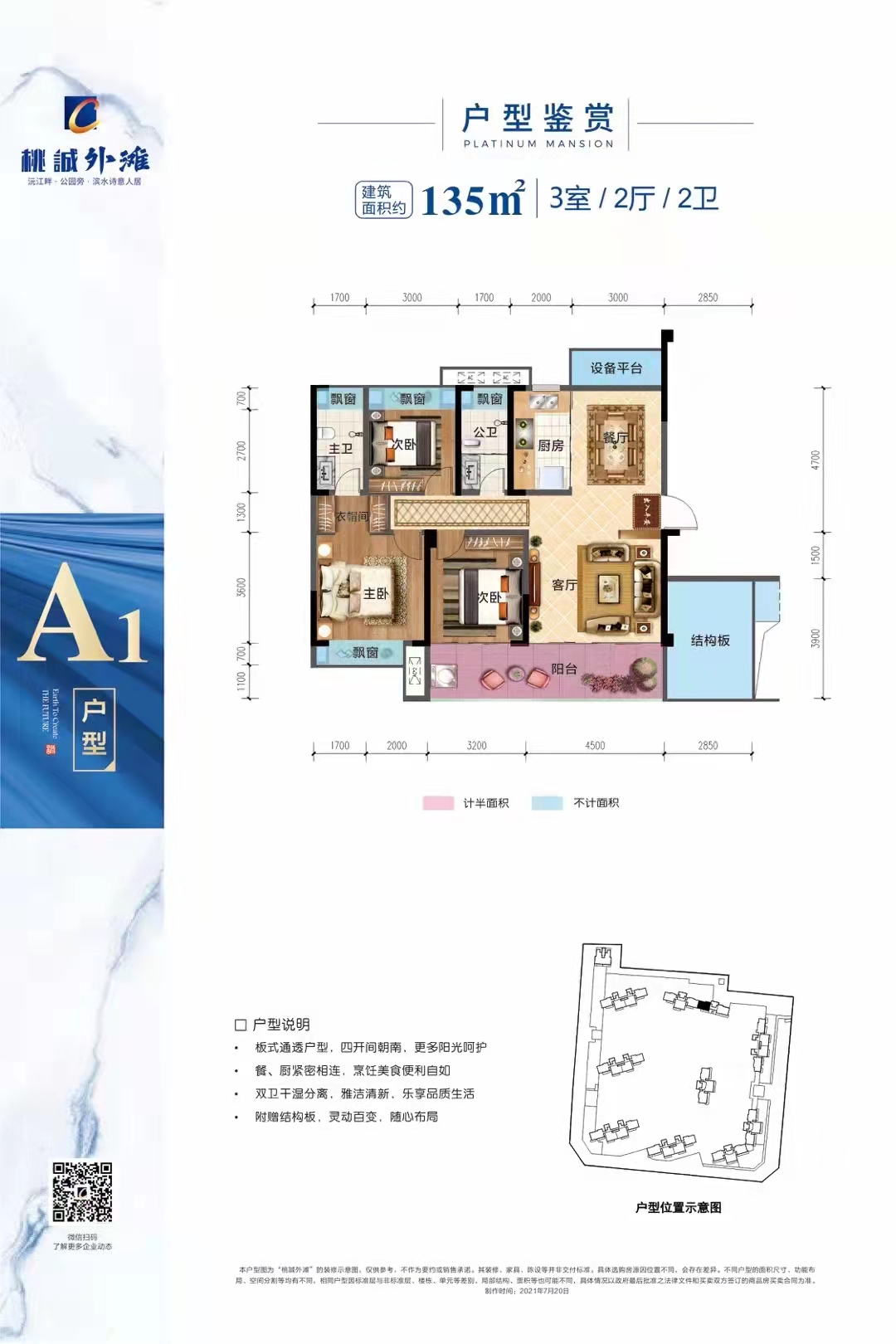 桃源桃诚外滩3室2厅2卫A1户型图鉴赏-看好房