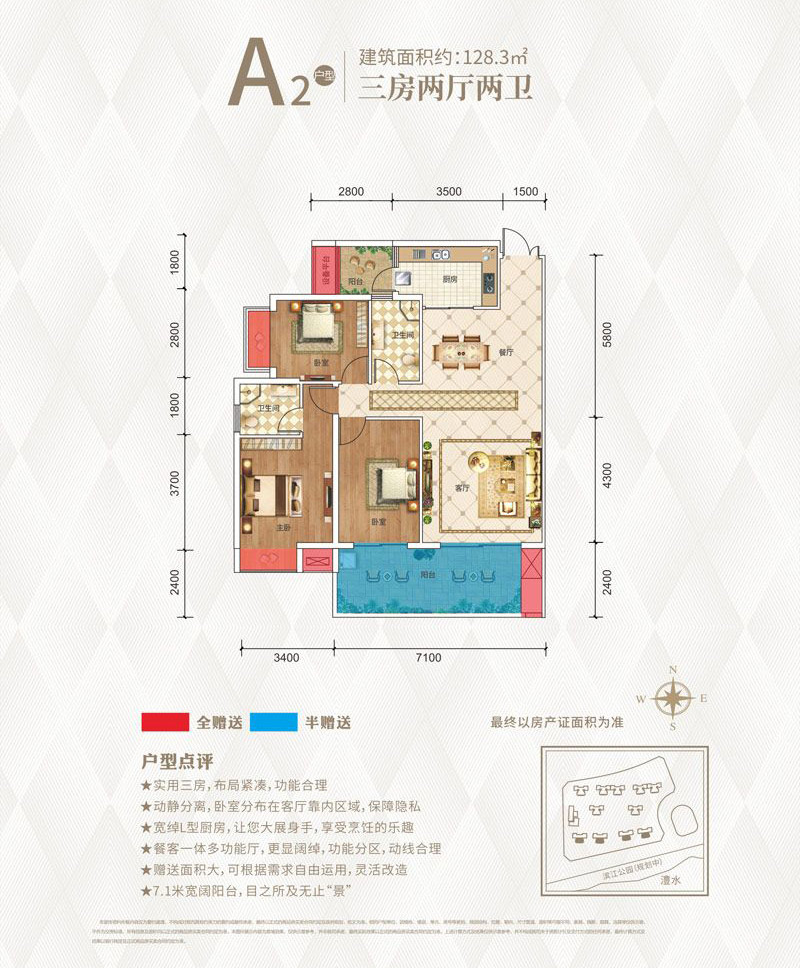 慈利临江府3室2厅2卫A2户型图鉴赏-看好房