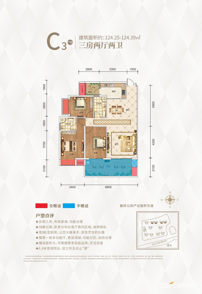 慈利临江府3室2厅2卫C3户型图鉴赏-看好房