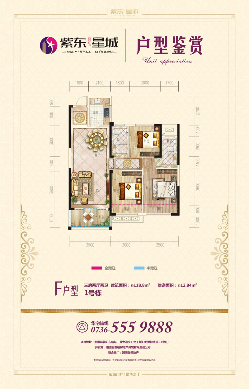 临澧紫东星城3室2厅2卫F户型 图鉴赏-看好房