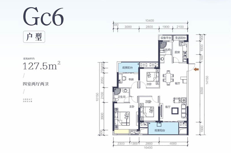 岳阳富华观澜郡4室2厅2卫GC6户型图鉴赏-看好房