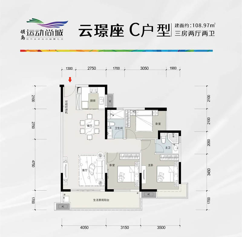岳阳合众领岛运动尚城3室2厅2卫C2户型图鉴赏-看好房