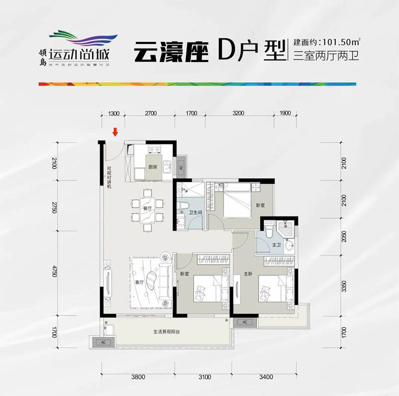 岳阳合众领岛运动尚城3室2厅2卫D户型图鉴赏-看好房