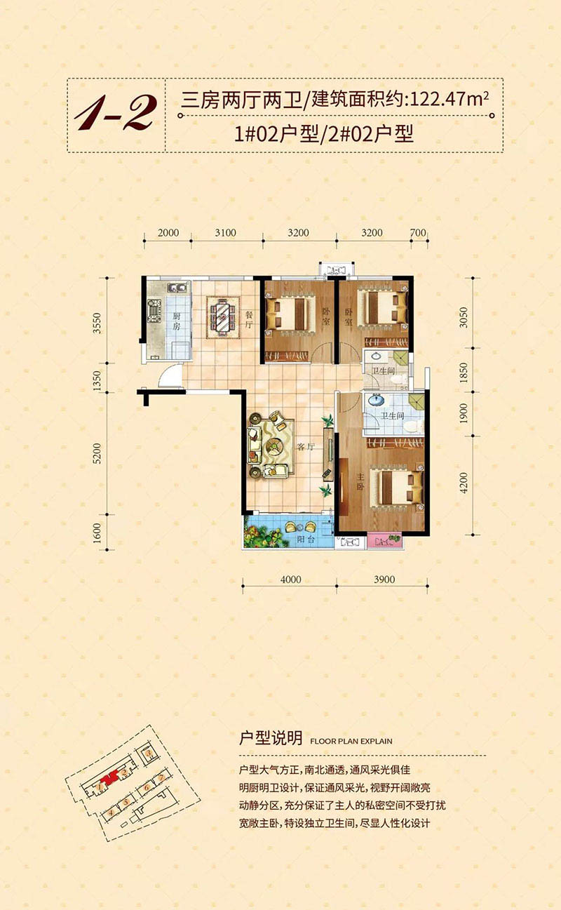 岳阳天邦新岳城3室2厅2卫1-2户型图鉴赏-看好房