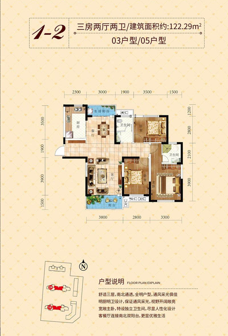 岳阳天邦钻石府3室2厅2卫1-2户型图鉴赏-看好房