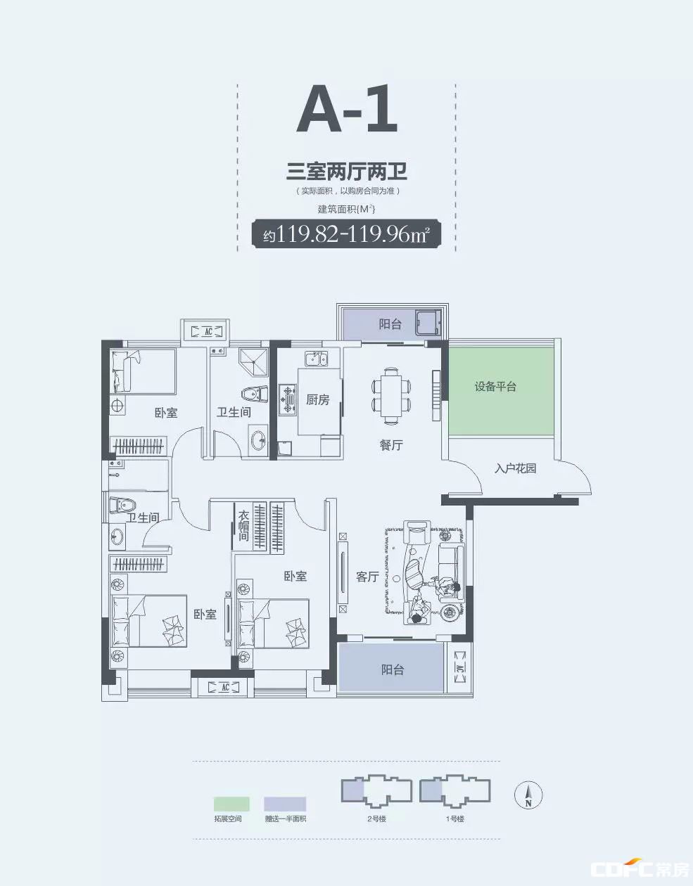 临澧未来城3室2厅2卫A1户型图鉴赏-看好房