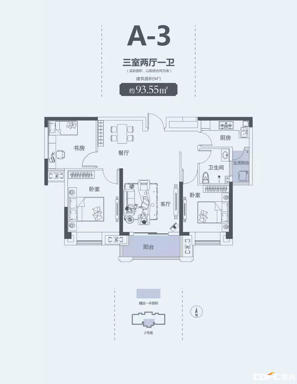 临澧未来城3室2厅1卫A3户型图鉴赏-看好房