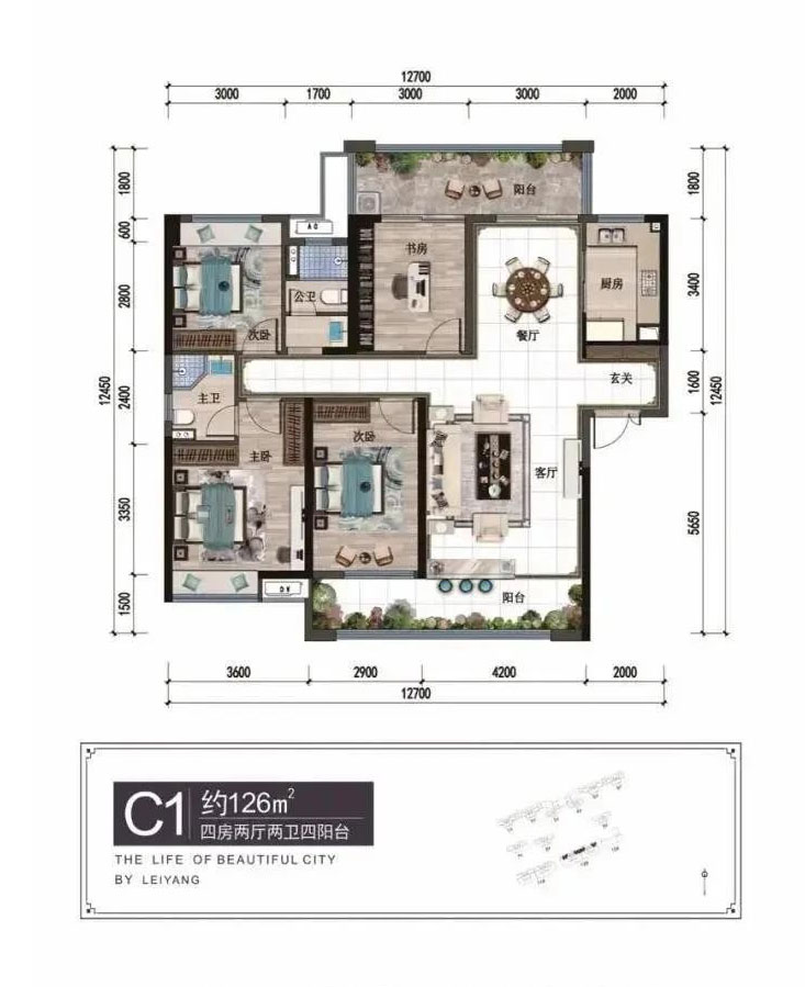 耒阳愿景铂悦府4室2厅2卫C1户型图鉴赏-看好房