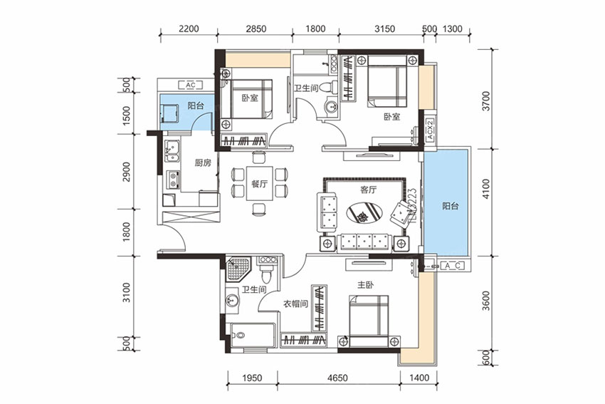衡阳珠江愉景豪庭3室2厅2卫K户型(东边户)图鉴赏-看好房