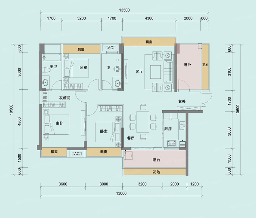 衡阳光辉一品3室2厅2卫2#A户型图鉴赏-看好房