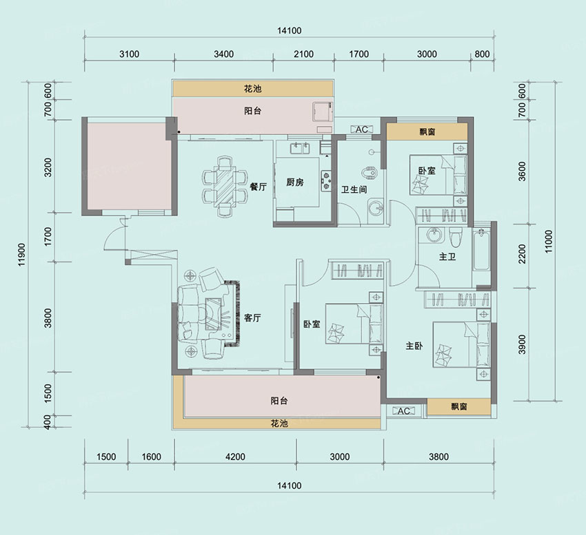 衡阳光辉一品3室2厅2卫3#C户型图鉴赏-看好房
