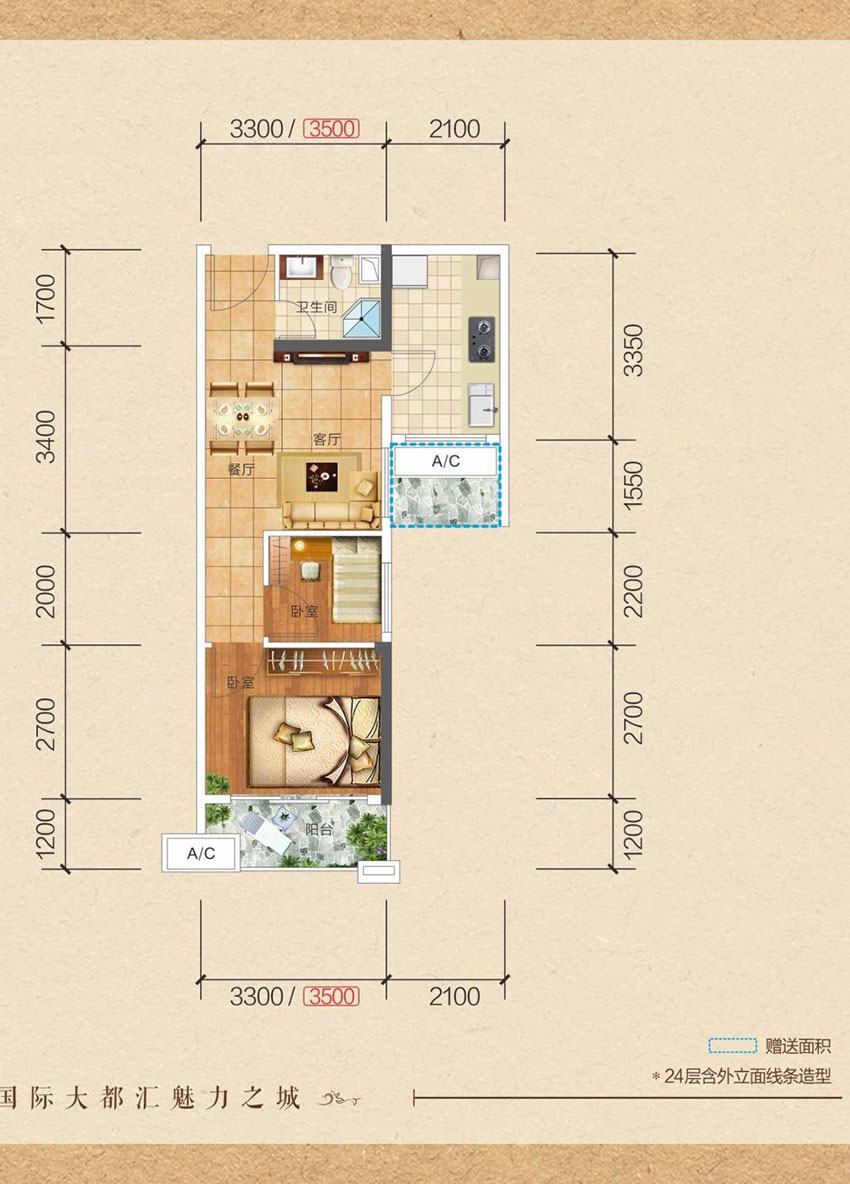 衡阳银泰红城1室1厅1卫H户型图鉴赏-看好房
