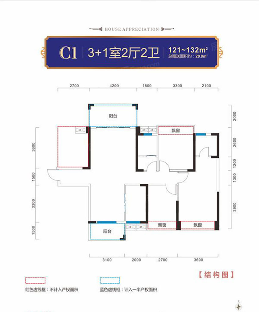 衡阳阳光金城3室2厅2卫C1户型图鉴赏-看好房