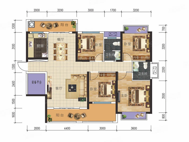 资兴东江首府4室2厅2卫A2户型图鉴赏-看好房