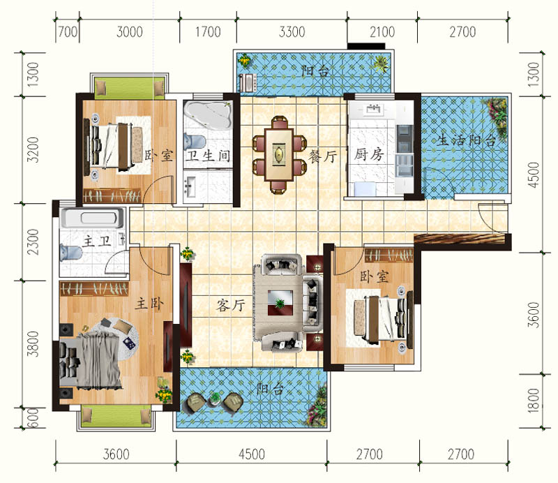 3室2厅2卫1厨