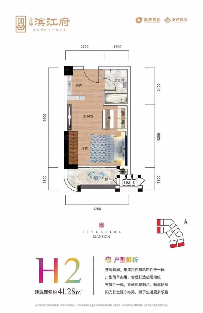 郴州金钟滨江府1室1厅1卫H2户型图鉴赏-看好房