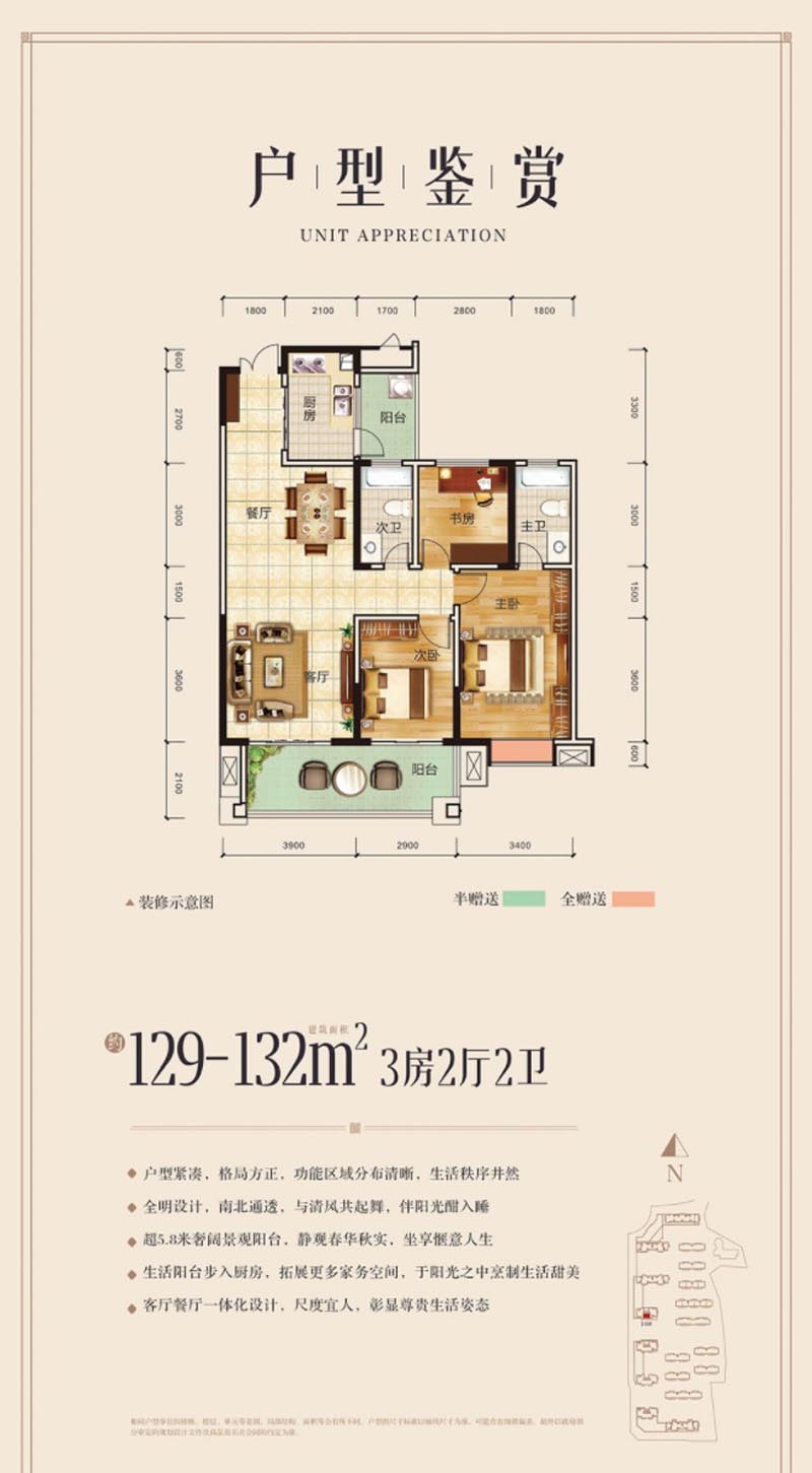 郴州金色御园3室2厅2卫A户型图鉴赏-看好房