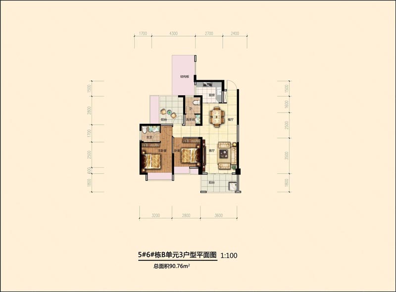 郴州书香名苑2室2厅1卫5栋B户型图鉴赏-看好房
