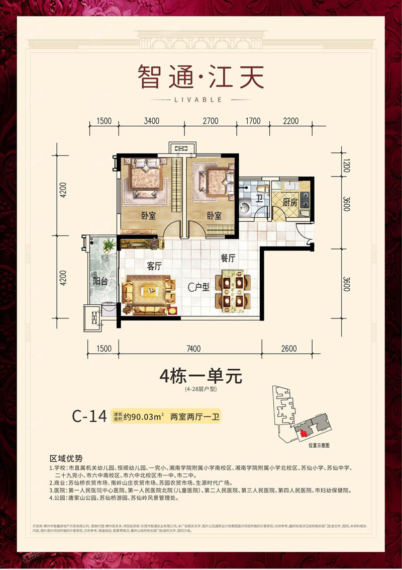 郴州智通江天2室2厅1卫C14户型图鉴赏-看好房