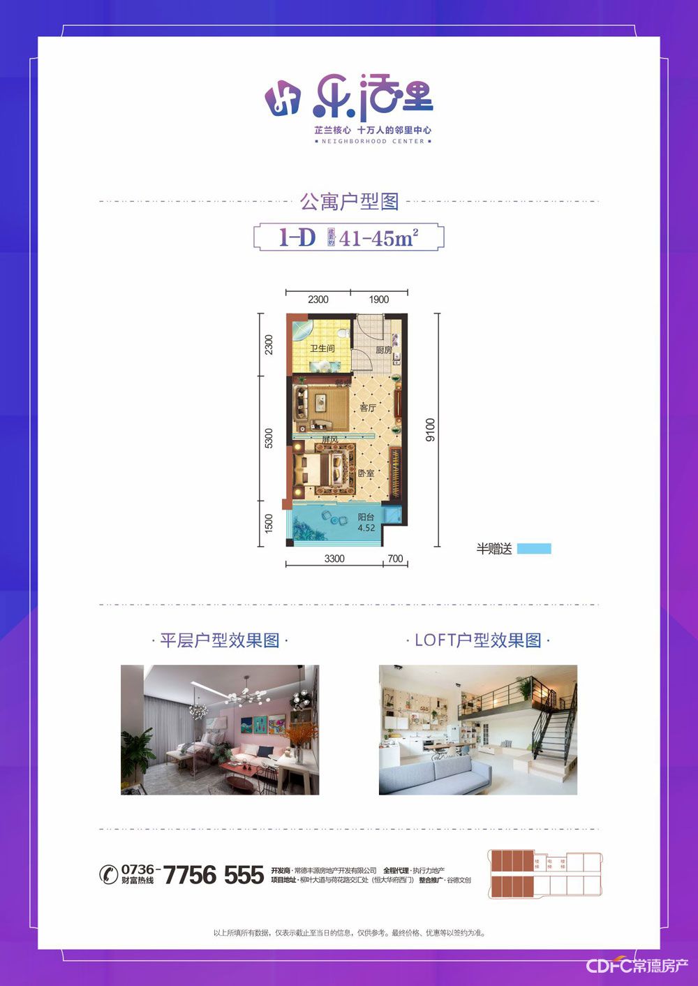 常德乐活里1室0厅0卫1-D 公寓户型图鉴赏-看好房