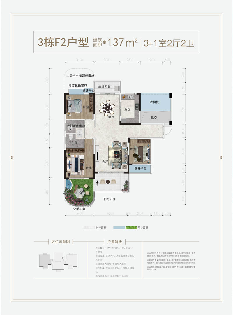 桃江锦绣城二期3室2厅2卫3栋F2户型图鉴赏-看好房