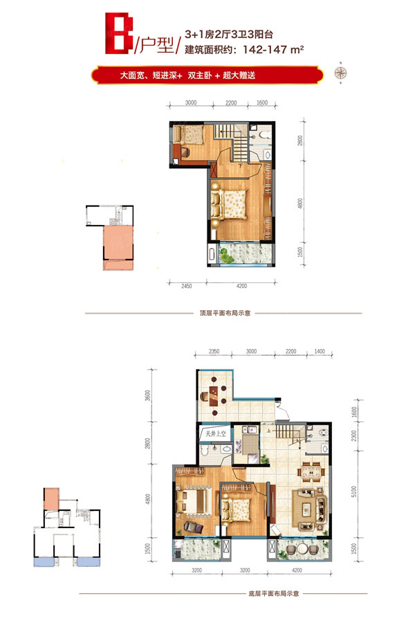 株洲壹品熙园3室2厅3卫复式B户型图鉴赏-看好房