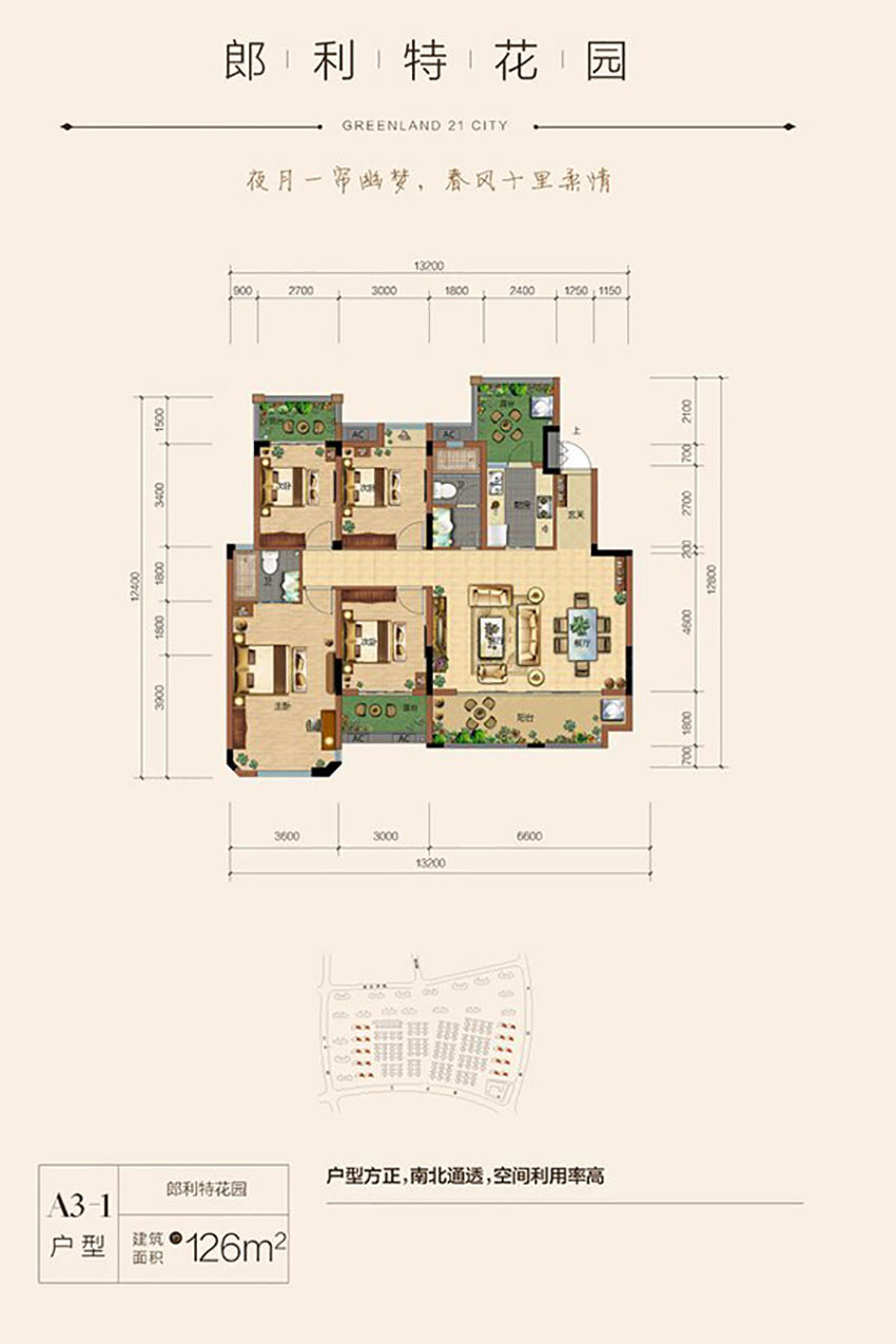 株洲绿地21城4室2厅2卫A3-1户型图鉴赏-看好房