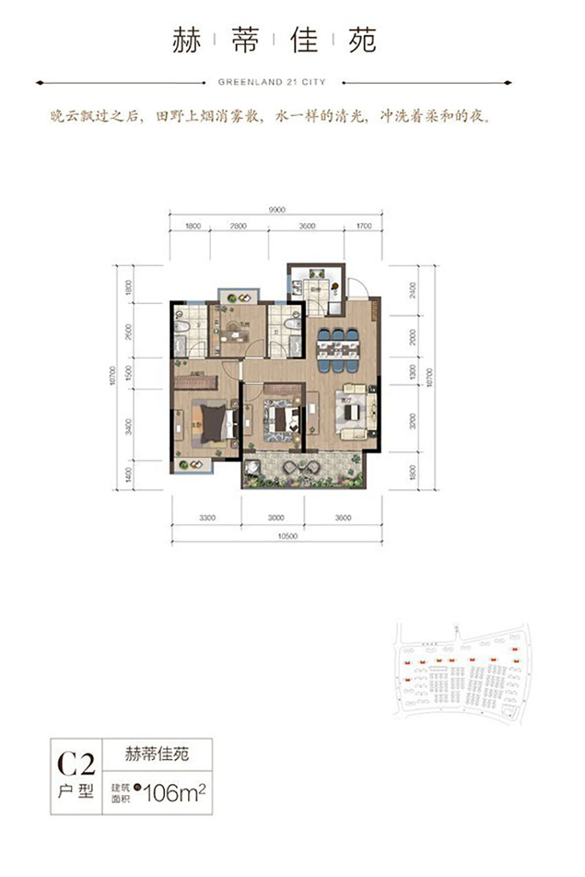 株洲绿地21城3室2厅2卫C2户型图鉴赏-看好房