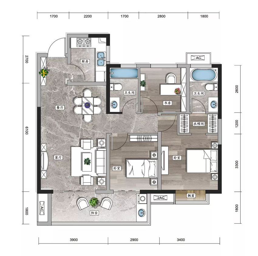株洲锦湘悦3室2厅2卫锦绣户型图鉴赏-看好房